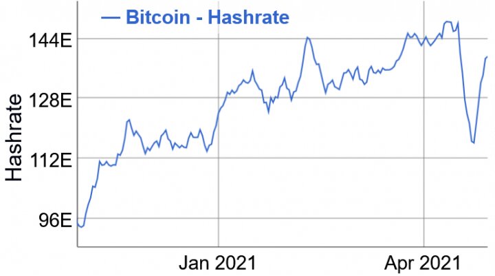 Según BitInfoCharts.com, el hashrate, o la potencia de cálculo de la red, vuelve a aumentar. La media móvil de 7 días del hashrate cayó un 21% entre el 16 y el 23 de abril. Desde entonces, ha subido un 16% y se sitúa en 139,35 Eh/s el 29 de abril.