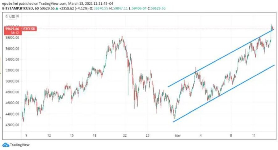 Esto le permitió a bitcoin superar de nuevo el billón de dólares de capitalización de mercado, hecho reportado el pasado martes 9 de marzo, y superar por primera vez los USD 60.000.