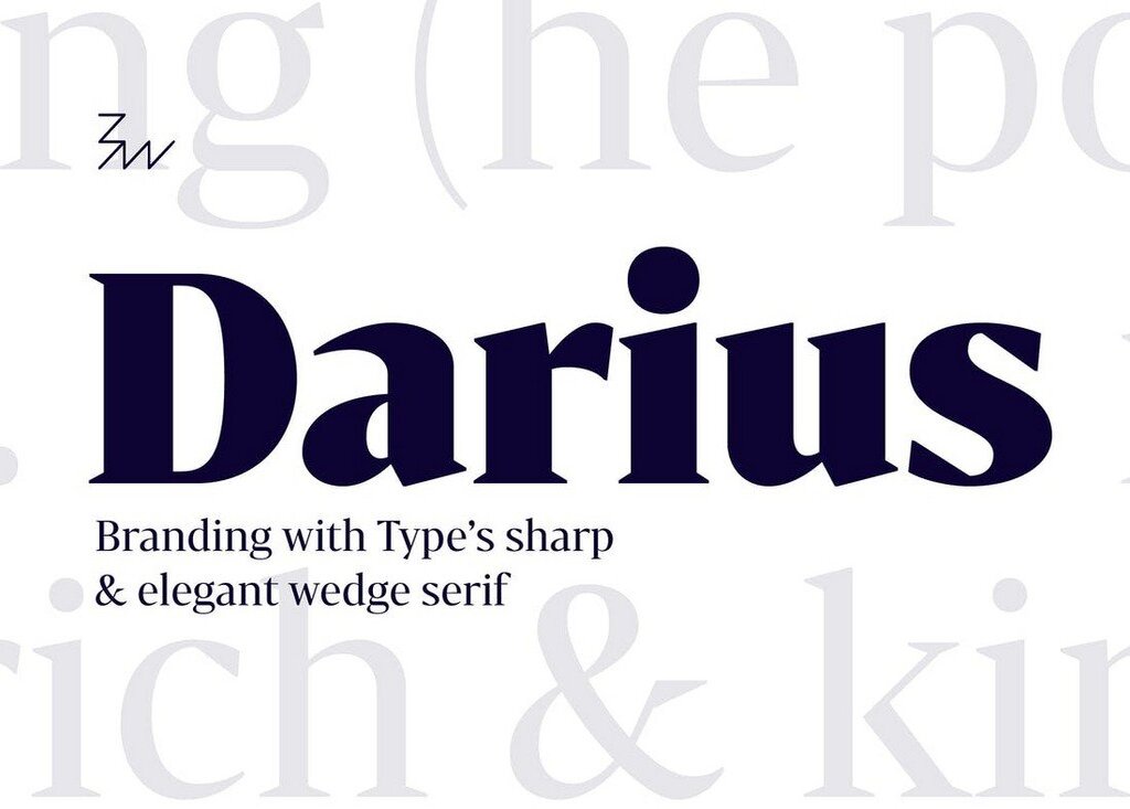 Bw Darius es una fuente creativa que presenta un estilo único de serifas de cuña. Viene en 4 estilos diferentes, incluidos los pesos de fuente clara y negra. Esta fuente es más adecuada para diseñar encabezados y títulos en libros modernos.