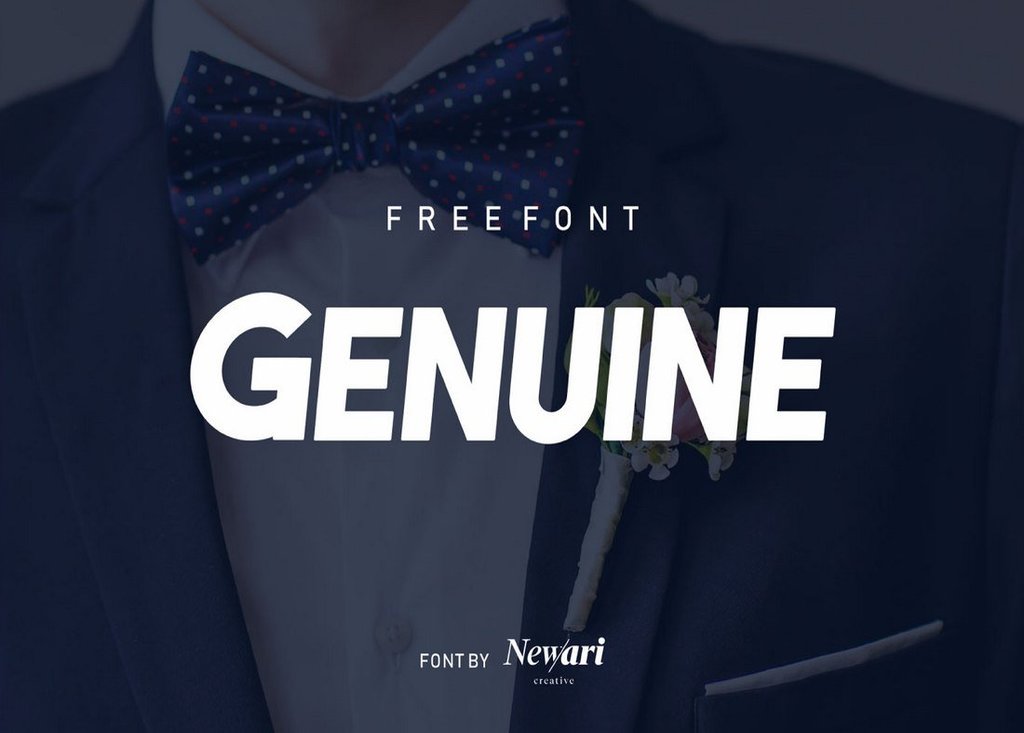 Genuine es una fuente gratuita que viene con un diseño grueso y en negrita. Esta fuente es ideal para crear títulos para carteles y encabezados de sitios web. Incluye letras en mayúscula y te permite usarlo en proyectos personales y comerciales de forma gratuita.