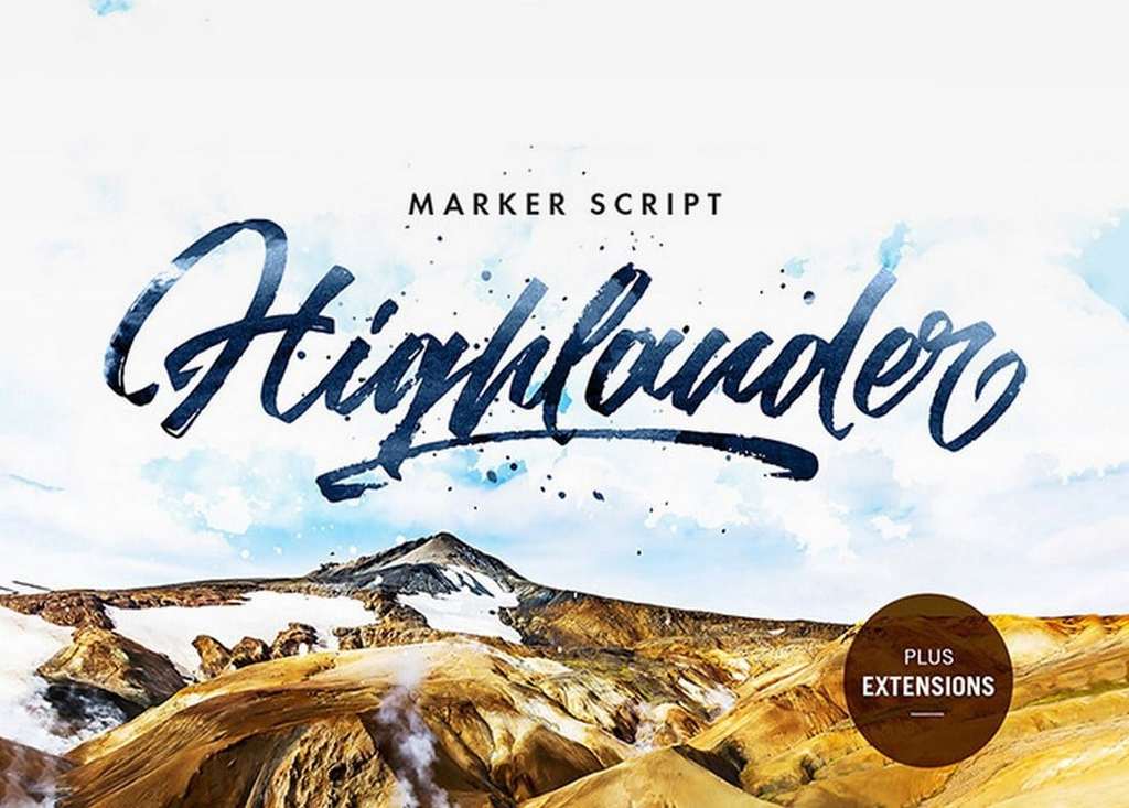 Highlander es una fuente de escritura elegante que puede usar para diseñar carteles, encabezados de sitios web y pancartas. Incluye ligaduras, salpicaduras y más.