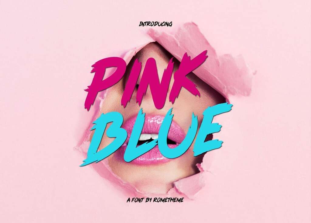 Pink Blue es una fuente moderna con un elegante diseño de pincel. Esta fuente es ideal para diseños de cultura pop, carteles, camisetas y más.